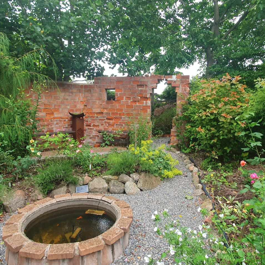 Trädgården är över 25 år gammal och håller nu på att restaureras efter att ha haft en Törnrosasömn i några år. Det betyder att vissa delar är klara, en del är under arbete och andra delar kvarstår att göras.
